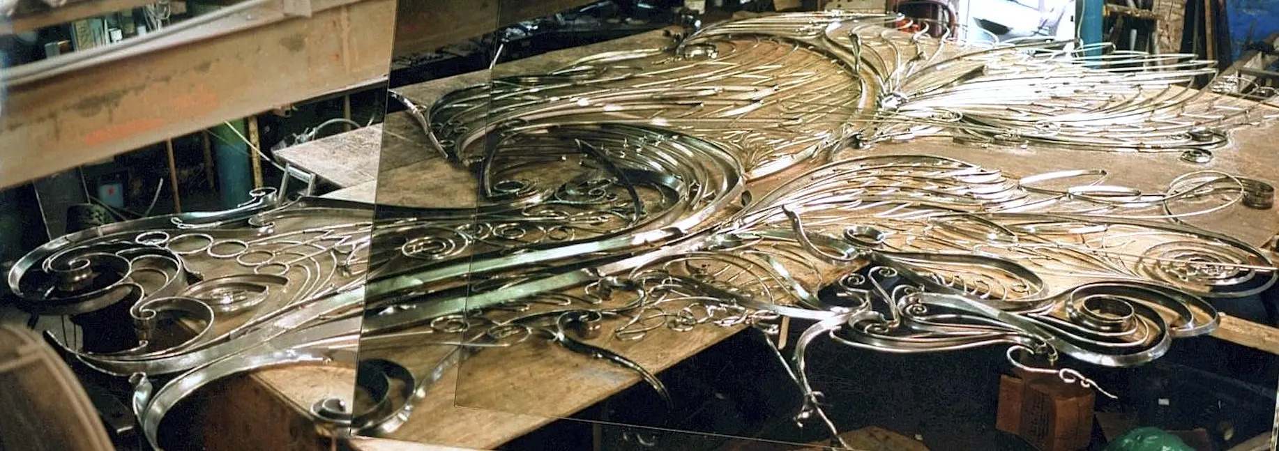 Une grandie partie des formes dans une oeuvre doivent être chauffées jusque'à un jaune clair, puis forgées avec des marteaux, suivi du marteau-pilon: l'inox demande un temps de chauffage plus long que l'acier doux. Nous utilisons également d'autres processus, dont la flexion de courbes longues, la soudure-découpe, et le finissage par meulage, ponçage et polissage. Une fois la réalisation achevée, toutes oeuvres sont livrés et installés, soit par nous ou par un contractant surveillé par nous sur chantier.